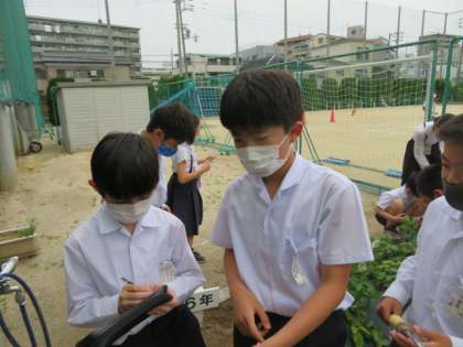 気体検知管を使って、袋をかぶせた葉の部分が呼吸しているかどうかを酸素、二酸化炭素の割合で調べていました。