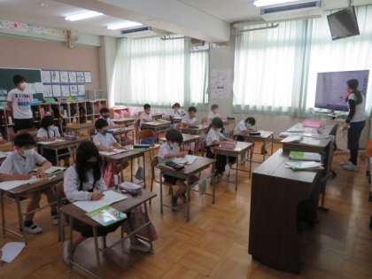 3年生の算数も、学年を3分割して習熟度別少人数学習で取り組んでいます。