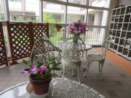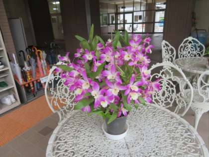 玄関に入ってすぐのホールのテーブルには、満開のデンドロビュームが咲き誇っています。