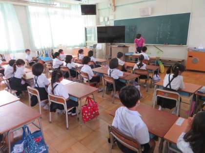 各教室では、前面にあるスピーカーから聴こえる放送アナウンスに耳を傾けていました。
