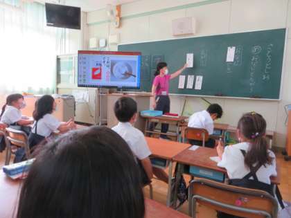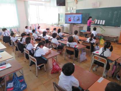 教材文を読む前に実際に砂糖と塩を用意して、子どもたちに見せたりさわらせたりしていました。
