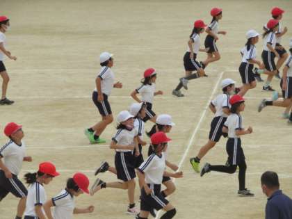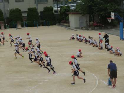 音楽に合わせて20mを往復するのは、子どもにとって大変なことです。