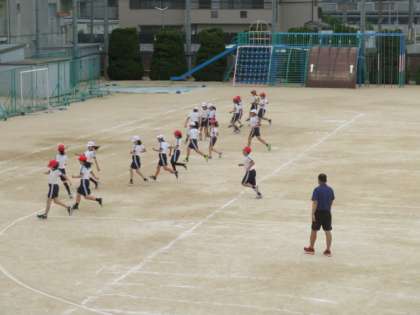 今年は、コロナ対策、熱中症予防ということで、曇り空で風通しが良く、ディスタンスもとれる運動場でマスクを外して行いました。