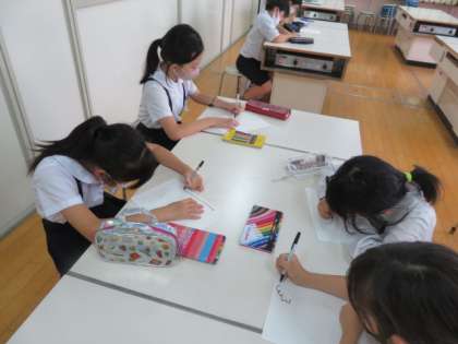 「歯によい食べ物を食べよう」という6月の給食目標に合わせた掲示物の作成をしていました。