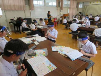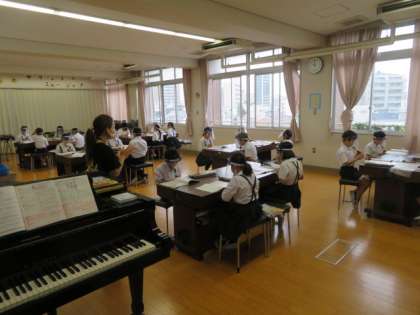 「歌のにじ」をリコーダー2部合奏で行い、美しいハーモニーと音色が音楽室に響いていました。