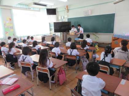 今朝は、1・2年生の各教室で読み聞かせをしていました。