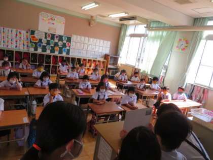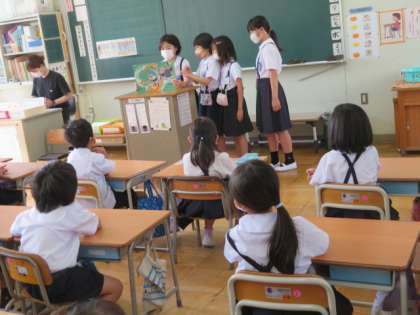 1年2組での読み聞かせの様子です。