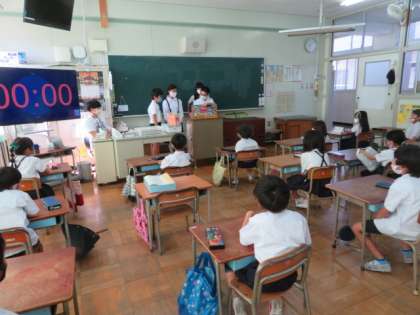 どの学級でも、子どもたちは読み聞かせを集中して聴いていました。