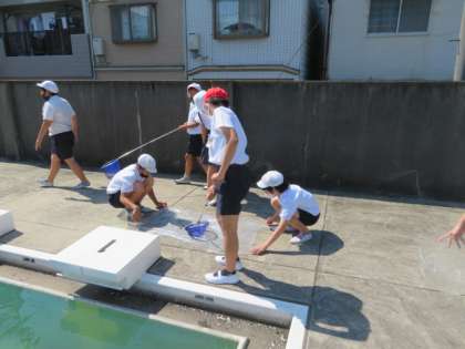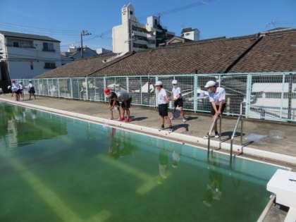 プールの底まで網を入れて藻ごと何回もすくっていましたが・・・。