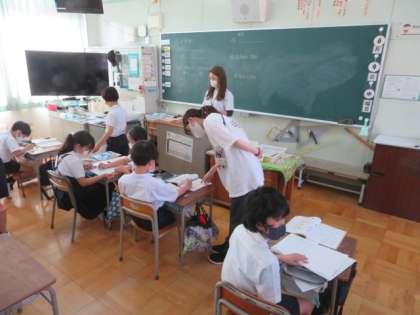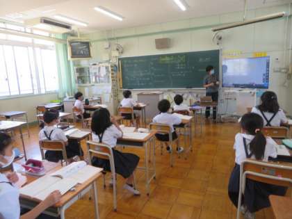 学年を3分割した習熟度別少人数学習で、「一億をこえる数を復習しよう」というめあてで、それぞれの教室ごとに学習を進めていました。