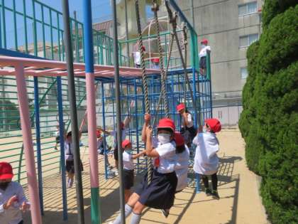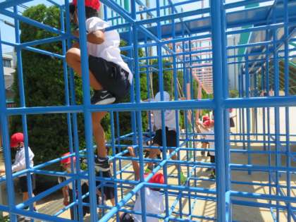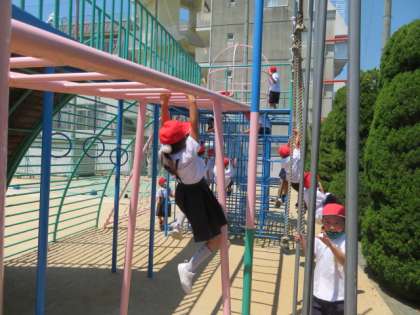 熱中症予防をしながら、それぞれの成長に合わせて精いっぱい運動遊びを楽しんでいます。