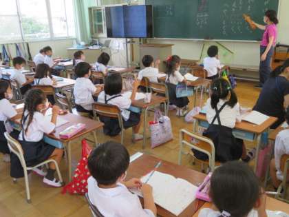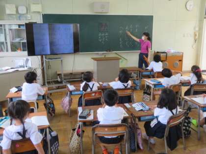 「が」「は」「を」「へ」それぞれ助詞として、例文にあてはめながらその正しい使い方について学んでいました。