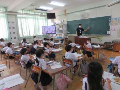 「いろいろなたし算のひっ算をしよう」というめあてで、くり上がりのある大きな数のたし算の問題をみんなで解いていました。