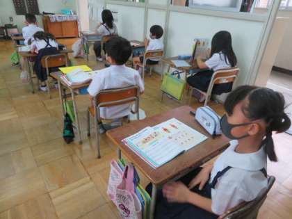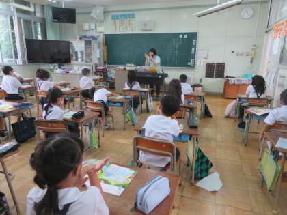 曲「かくれんぼ」を手拍子と歌で楽しんでいました。