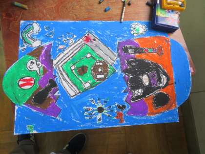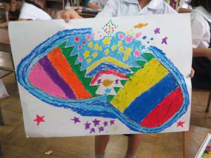 不思議なたまごから何が飛び出してきたか、楽しいイメージを膨らませて、絵に表しました。