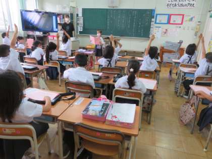 1組でもしていた「みつけたよ がっこう だいすき くいず たいかい」を2組は4時間目にしていました。
