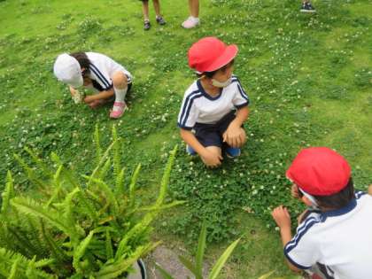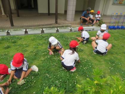 シロツメ草の花を摘むときから、それぞれに楽しそうに活動していました。