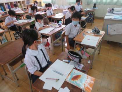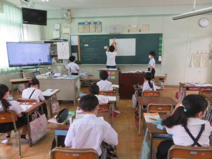 今日は、学級ごとに算数の学習をしています。
