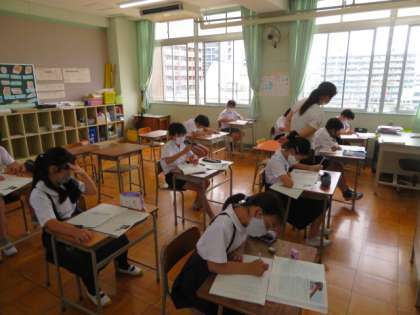 2分割したもう一方のグループは、学習室で同じ教材を取り上げながら学習を進めていました。