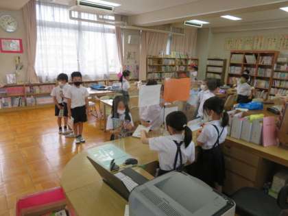 借りた本の返却と貸し出し、自由読書などの活動をしていました。