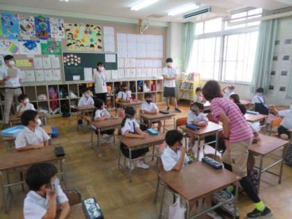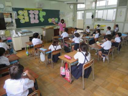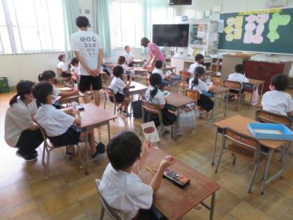 栄養教諭の質問に対して、子どもたちは積極的に答えていました。
