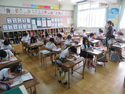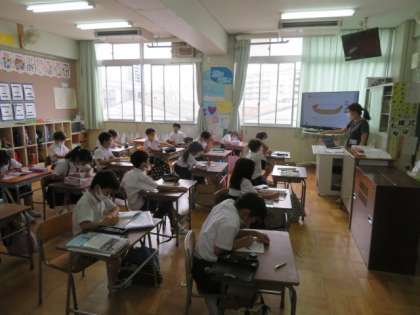 大型モニターを視聴しながら数の読み方を英語でしっかりと声を出したり、ワークシートを使って英語の数を確かめたりしながら楽しく英語活動をしていました。
