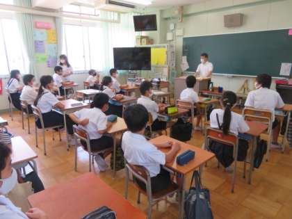 2組は、数学の先生による「プラスの数とマイナスの数の足し算をしてみよう !! 」という課題で、トランプのカードを使って、ゲームを楽しみながら、プラスの数とマイナスの数の関係について理解を深めていました。
