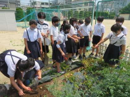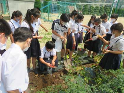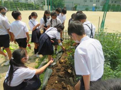 学習園で実ったジャガイモの収穫作業を行っていました。