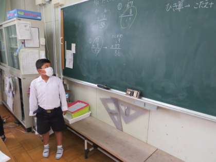 繰り下がりのあるひき算のひっ算の練習問題にチャレンジしていました。