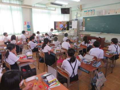 「検流計」を使って、電流の大きさを調べよう」をめあてに、直列、並列それぞれのつなぎ方の違いで、電流の大きさがどのように変わるか各自で実験をしていきます。