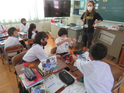 2組では、グループごとに「直列のつなぎ方でモーターが速く回るのは、どうしてだろうか」という課題で、検流計を使いながら実験をしようとしていました。