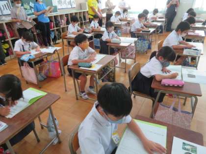 今日は、第2回目の校内授業研究会ということで、3年1組で説明文「自然のかくし絵」の研究授業を行いました。