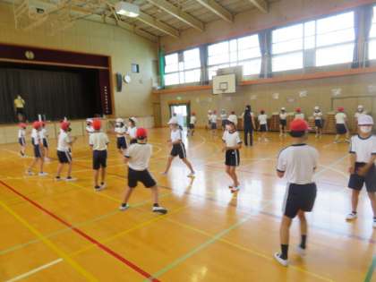 この後、大きな円になっての隊形で全体の動きの確認もできました。