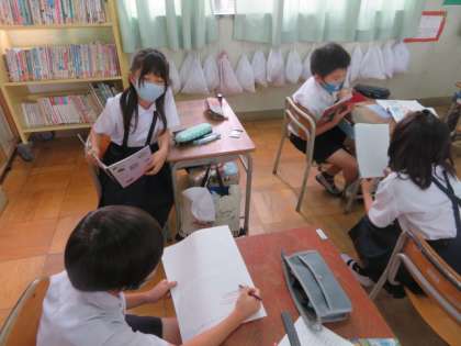 「走れ」の第2場面について、登場人物の心情を主にみんなで読み取りながら意見を交換していました。