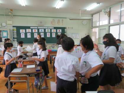 「好きな曜日を伝え合おう」ということをめあてとして、英語を使っての活動に主体的に取り組んでいました。