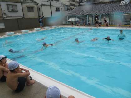 子どもたちが作っていた「てるてるぼうず」の効果が出たのか、3時間目が始まる頃には雨が上がり、気温、水温もプールに入れる状況だったので、プール水泳を実施することができました。