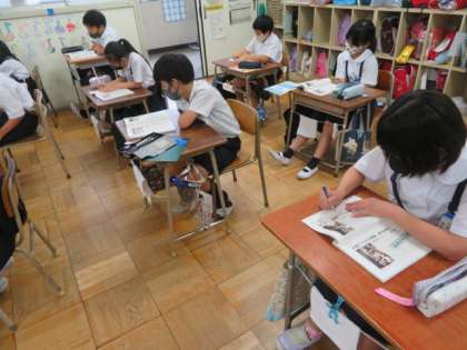 「新聞記事を読み比べよう」で、新聞各紙によって取り上げ方や見出し、リード文の違いなどを比べていました。