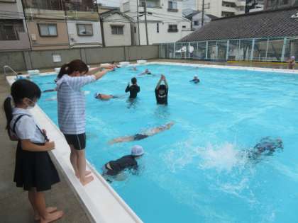 朝からの雨があがって、4時間目にプールに入ることができました。