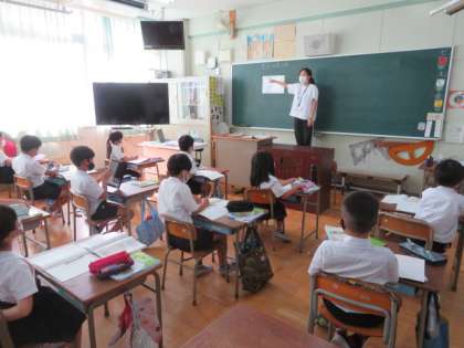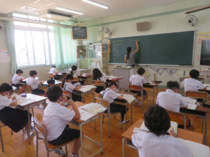 表とグラフの学習のまとめを、学年3分割したそれぞれの教室で行っていました。