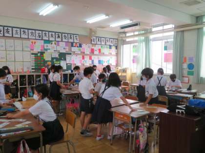 4年生では、音楽と理科の授業を担任で交換して行っています。