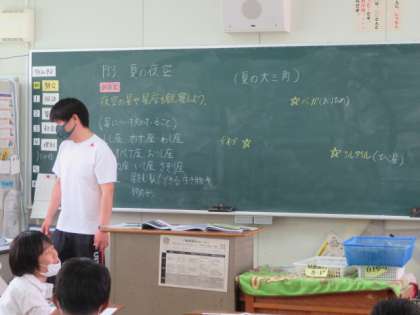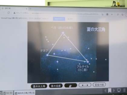 2組では、1組担任が理科で「夜空の星や星座を観察しよう」をめあてに授業を行っていました。