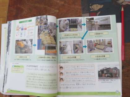 パン工場の見学について、教科書や資料を使って学んでいました。