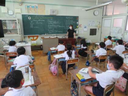 パンができるまでという学習で、パンはどのように作られるのだろうか ? というめあてをもって、みんなから出たいろいろな意見をもとにまとめていました。