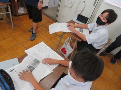 いろいろな資料やヒントをもとに考えを進めていました。