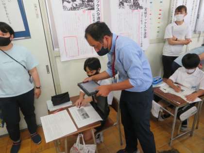 ICT機器も効果的に活用しながら、見出しについてよく考えることができた授業でした。