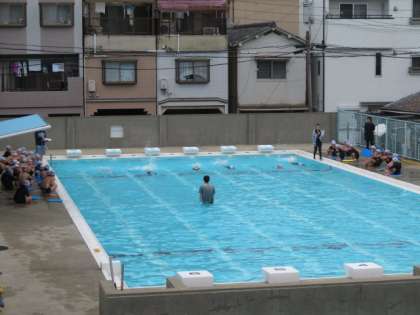 25mプールの縦を使って、水泳記録をとったり、練習をしたりしていました。