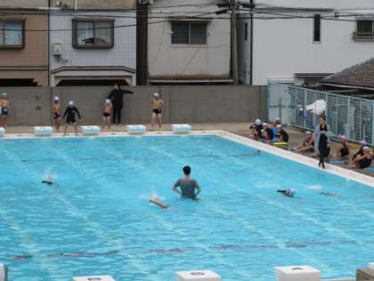 2時間目からプールに入って泳いでいます。