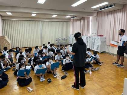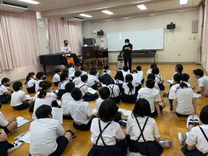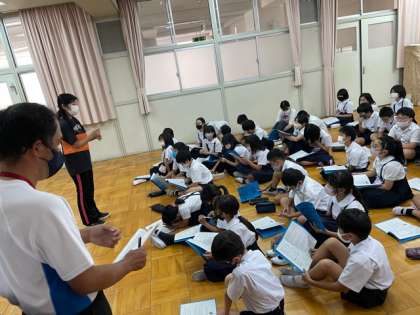 多目的室で、自然体験学習(林間学習)の児童向け説明会を行いました。