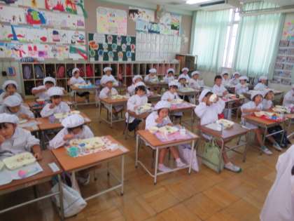 7/15 木 12:40 1年生の給食の様子