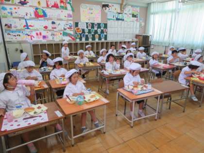7/19 月 12:40 1年生1学期最後の給食の様子